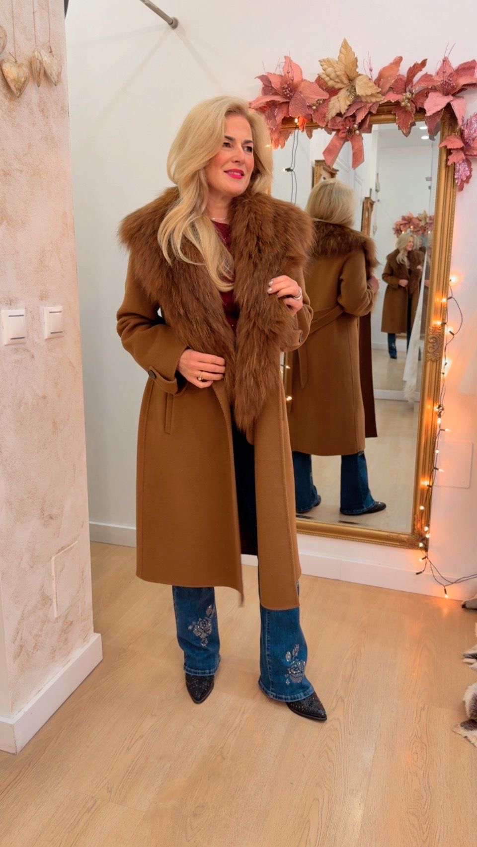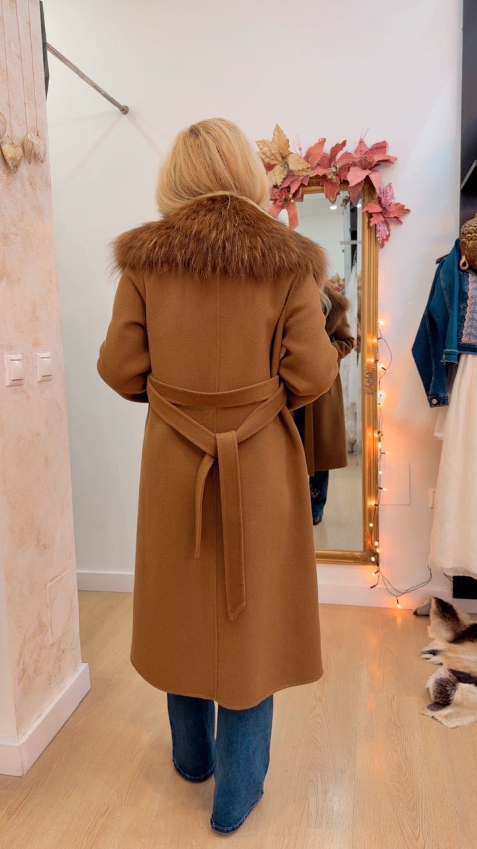 Abrigo de lana marrón y cuello de piel Gertrudis