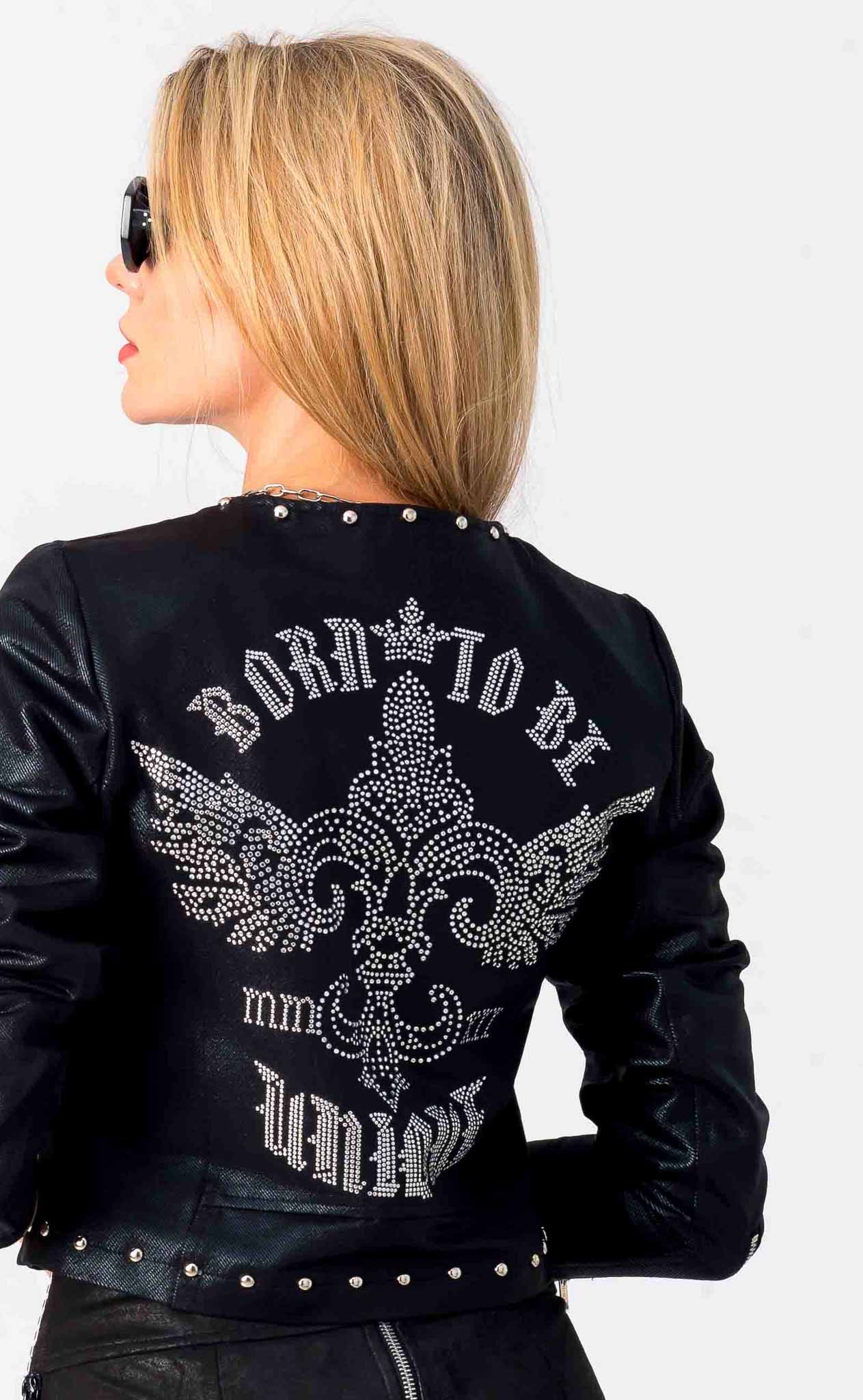 La colección Black Diamond destaca nuestro estilo y autenticidad con la belleza de las piedras preciosas. Esta chaqueta con pedrería te invita a expresar tu individualidad y brillar en cualquier ocasión.