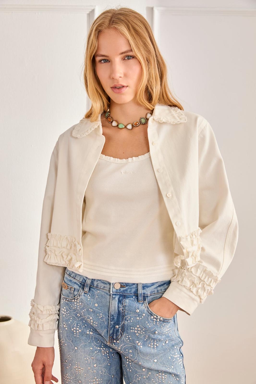 Chaqueta Denin corta volantes blanco