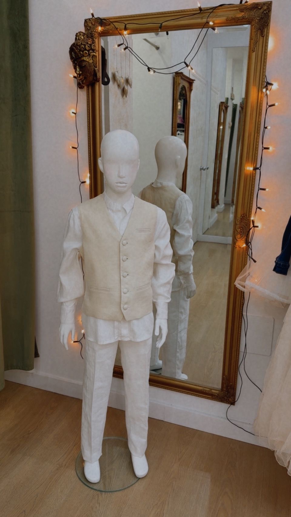 Conjunto de Comunion de 4 piezas de lino con cuello Mao blanco